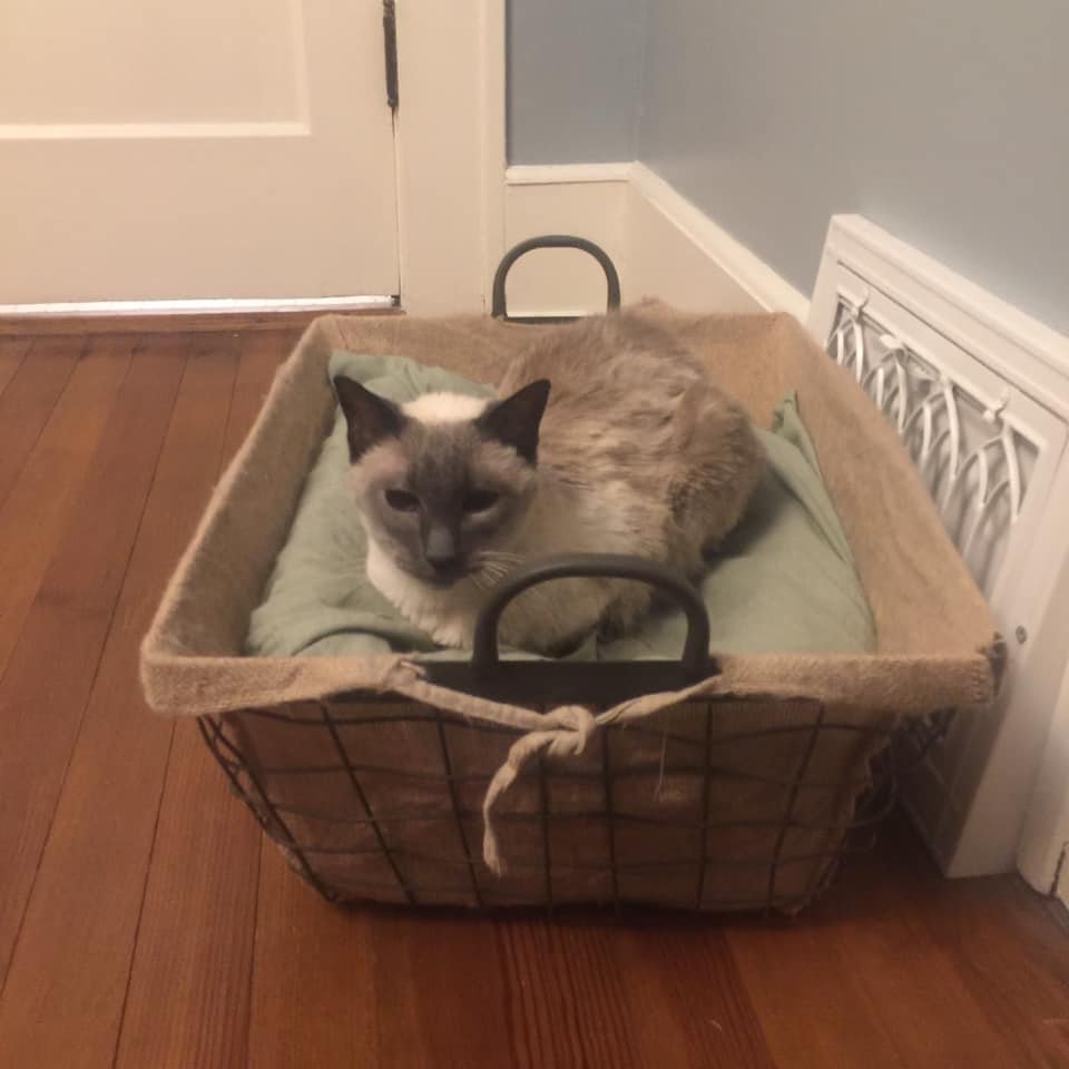 So excited! The cat tree arrived yesterday for us to install so Sophie, our 18-1/2 year old Siamese, can officially ignore it. I knew to install the thing next to the vent, since Sophie has always been a heat seeker....