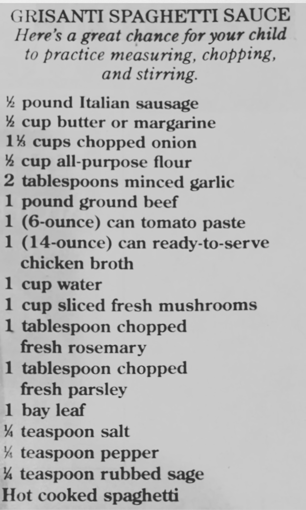 During our last visit, before Ronnie Grisanti died in 2017, he visited our table and I told him how much I loved his grandfather Elfo’s “special”; and how I had a cherished copy of the Prices’ book with Elfo’s recipe. He left us briefly and returned with a printed postcard of the recipe. I keep that card in the Prices’ book, both holding deep sentimental value to me.