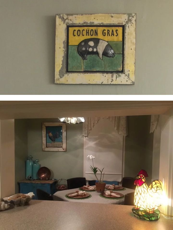 I will be keeping the stained glass light fixture in the breakfast nook right where it is.  In case you hadn’t already noticed: I REALLY LIKE STAINED GLASS!! (see chicken lamp below).
