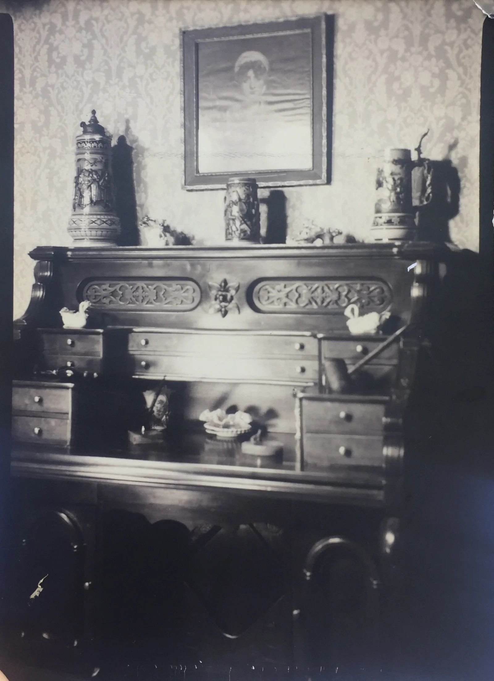 The lady who sold Sadie to us let us know the house is older than indicated in the real estate listing and tax records.  The record shows 1910, but that is really only the year Sadie was first put on the tax rolls. Our seller had once possessed (but lost) a photo postcard of Sadie from 1883, when she was smaller and looked very different. We haven’t found any historical photos of the exterior yet; but below are two that were given to us by our neighbor, who bought them at an estate sale in our home the year before we bought Sadie.